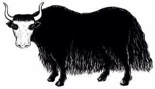 上述の表現のうち、「全身が黒く角ありの」、「全身が焦茶色で口の部分が灰色または白で角ありの」は、いずれも「角がある」という表現も含まれている。この2つの表現は、ヤクの祖先である 野生ヤクによくみられる毛色であるため、「角がある」という野生ヤクにみられる特徴を含んだ表現になっているものと思われる。