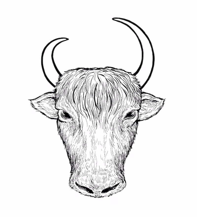 [ヤク][羊][山羊] 左右の角が同じ方向に曲がった状態
