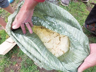 凝乳の水分を切るための袋。